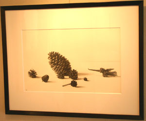 『フェルメールのほとんど完璧な世界やヘームの緻密な描写に憧れます。― モチーフと絵との視覚的な差異を埋めることがわたしの制作の大きな主眼ですが、いつまでたっても納得いく結果がえられず、観察力や技術への向上心が、描くことへ向かわせる原動力になっているようにも思えます。』と言う藤田さんですが、今回モチーフはすべて「果実」を選択しておられ、絵画であるのに、パーンと張りつめ今にも水滴がしたたり落ちそうな葡萄や、しなびた切り口のオレンジなど、その存在感には作家自らの生命への感動が伝わって来るように感じます。 写実を超えた写実の世界でした。 |