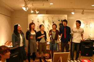 東洋大学学生同好会のアカペラグループ<ハム>の皆さんでした。学生達のフレッシュな歌声をお聴き頂きました。勉強の合間に練習した成果は、まあまあでしたでしょうか?ボイスパーカッションの男声4人は聴き物でしたね〜! 勉学に、部活に、学生時代でなければ出来ないことを、経験してほしいと思う親世代の感想でした。 |